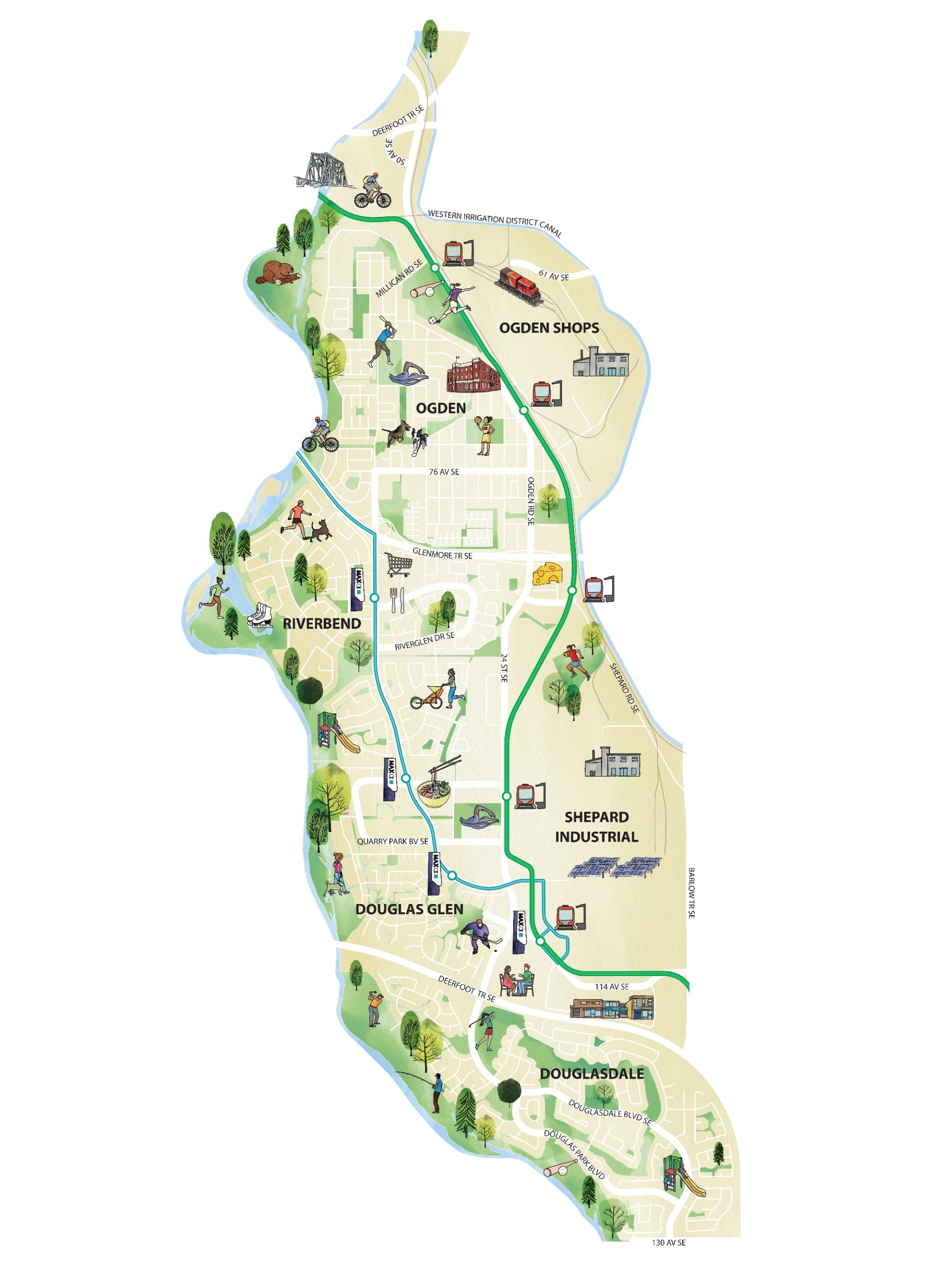 The Carburn Communities include Douglasdale, Douglas Glen, Ogden, Ogden Shops, Riverbend and Shepard Industrial.
