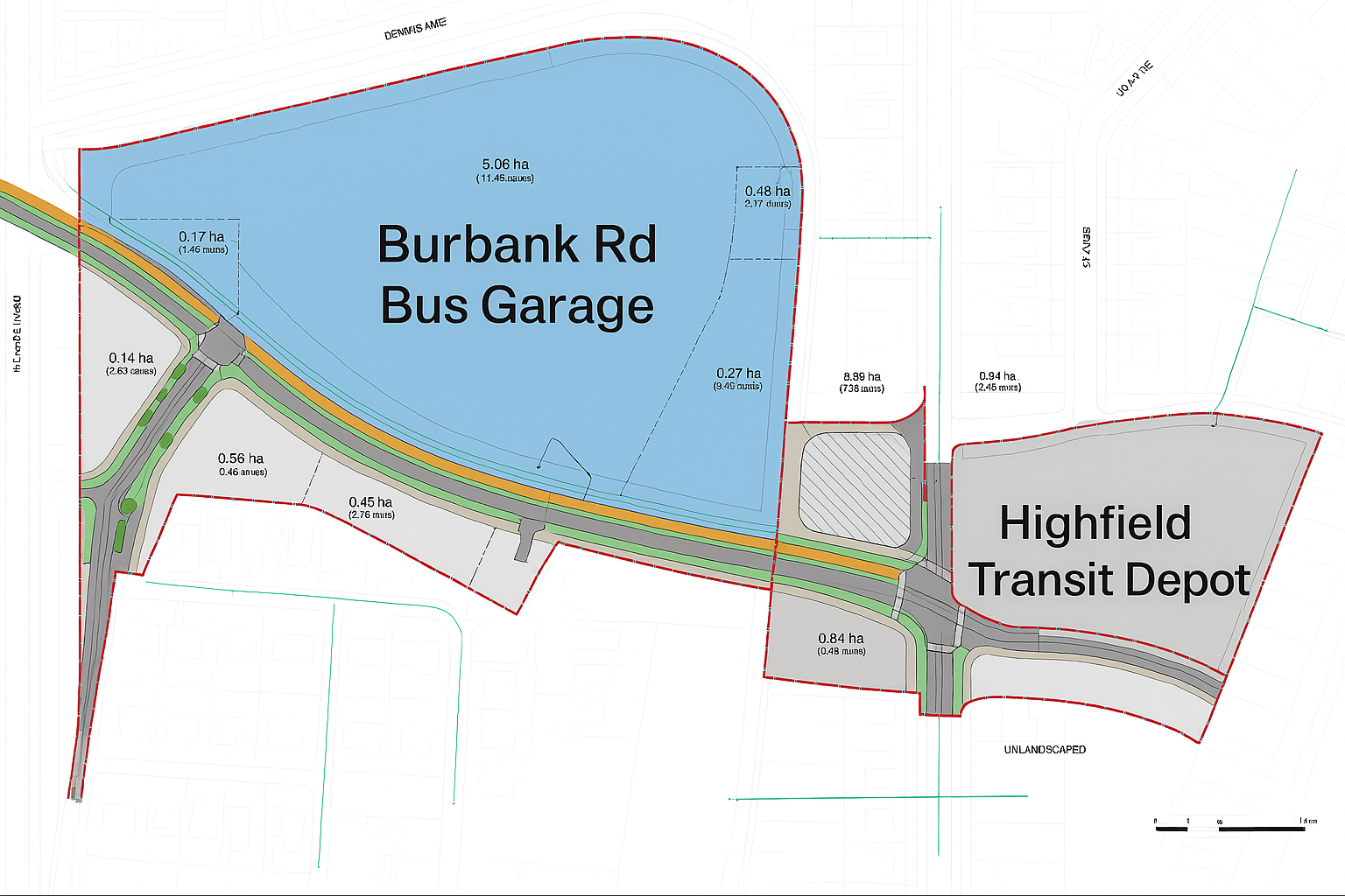 - The proposed Land Use and Outline Plan seeks to facilitate the future development of new Calgary Transit bus maintenance and storage facilities, at 4974, 4998, and 5353 Burbank Road SE (Burbank Site) and a Transit depot at 1920 Highfield Crescent SE (Highfield Site).