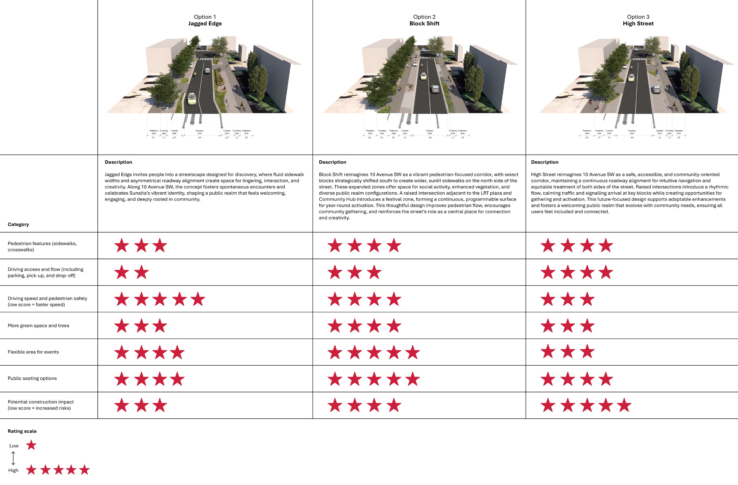 Phase 2 engagement includes three proposed Main Street design options for 10 Avenue SW. Please see below to review the concepts and to provide your feedback.
