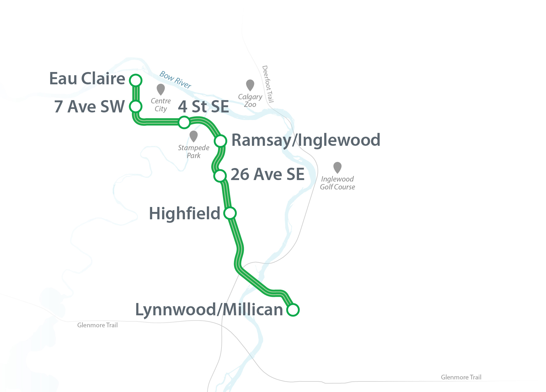 - In 2021 a deep tunnel through downtown was proposed as the way to get passengers into downtown. However, due to escalating costs, it was not possible to build the full length of Phase 1 from Shephard to Eau Claire and the route was shortened in 2024.
