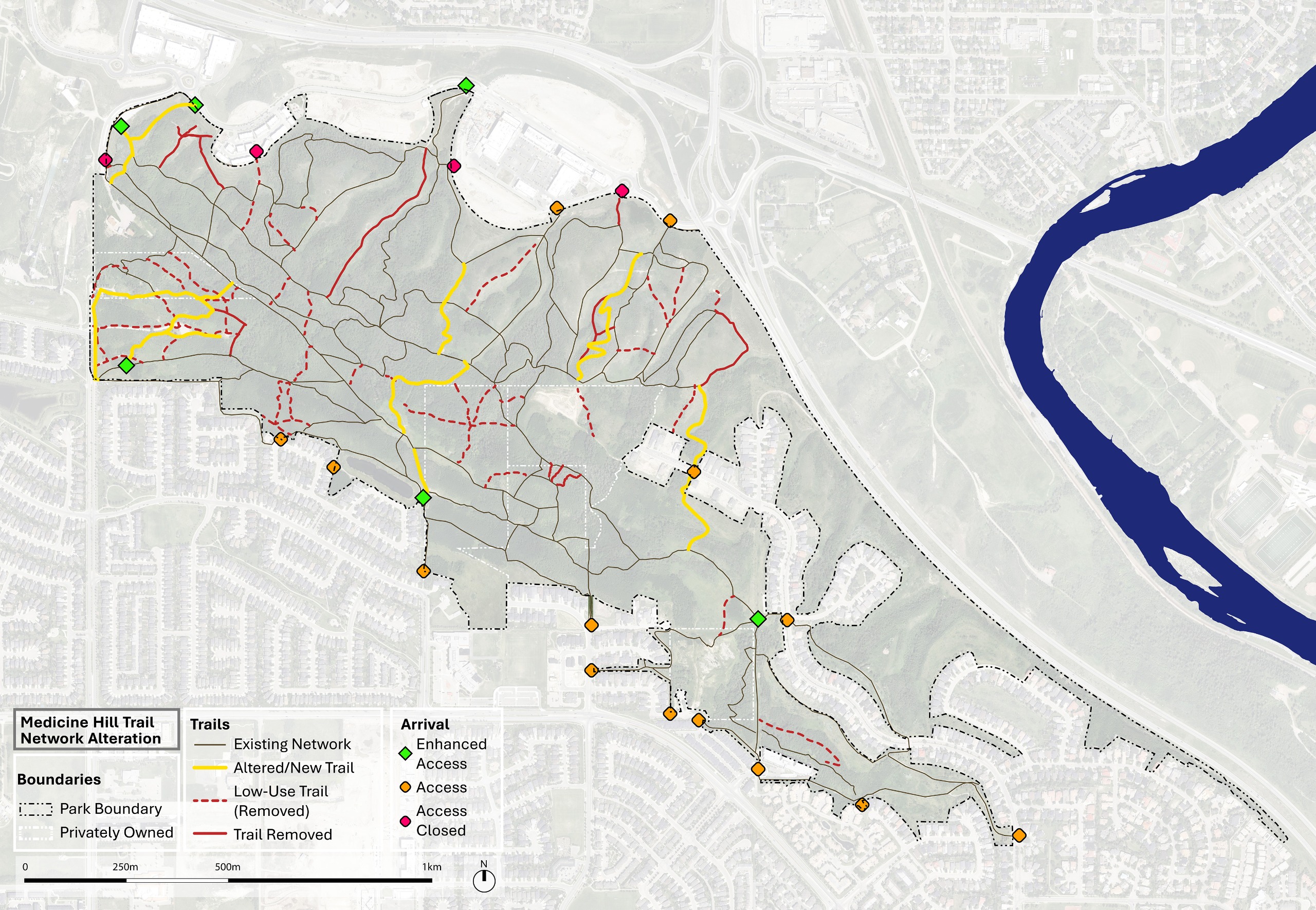 The trail network at Medicine Hill / Paskapoo Slopes is being updated to better support existing trail use while protecting the park’s natural, cultural, and archaeological values.