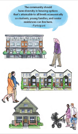 We heard a wide range of feedback on housing choices and individual housing preferences based on factors like lifestyle, age and other changing needs. Communities that provide a wide variety of homes to choose from help current residents stay in the area as they age or as their needs change and welcomes new residents and families.
