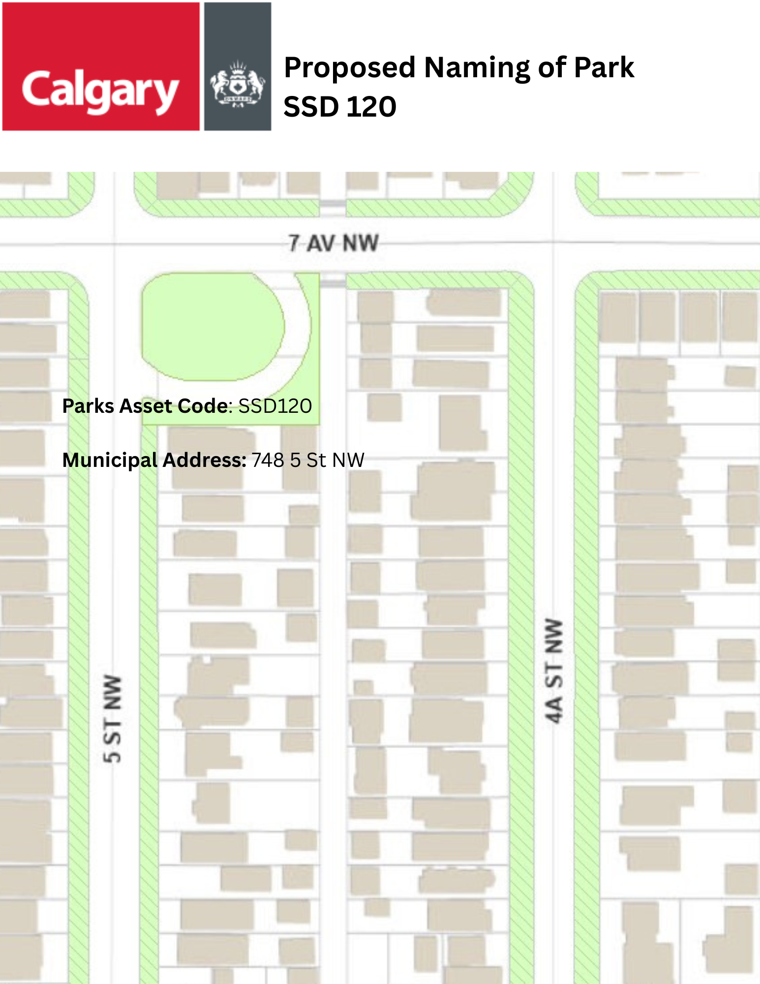 The City of Calgary has received an application to name park SSD120 in the northwest community of Sunnyside. The proposed name is “Violet King Park.”
